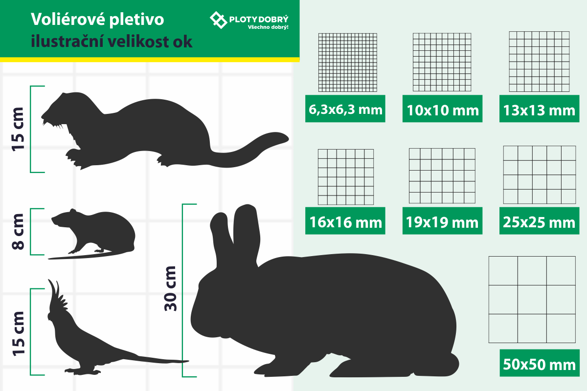 Velikost ok vybíráme především podle velikosti a hmotnosti zvířat, která chceme chovat. Zároveň je dobré zvážit, jak dobře bude skrze pletivo vidět – i to může hrát roli při výběru.